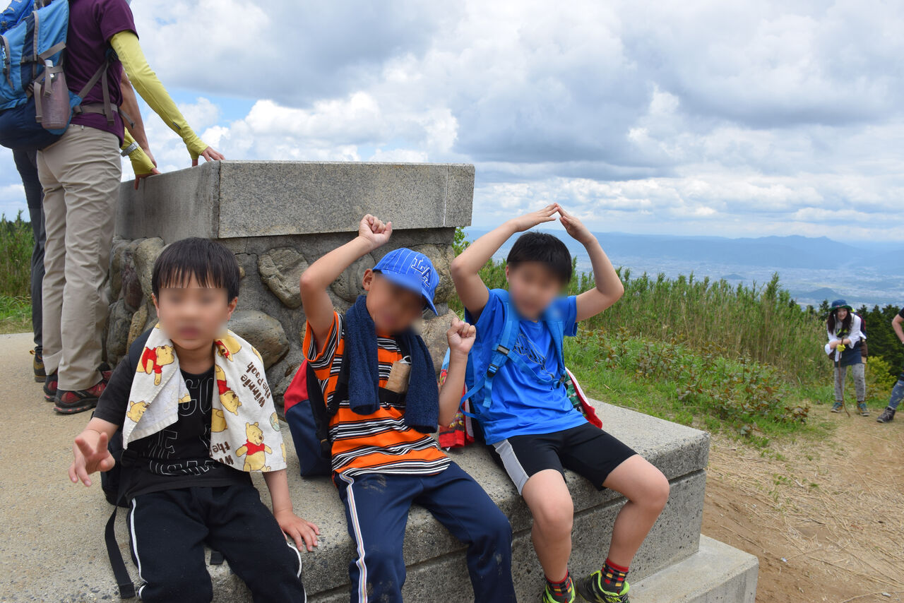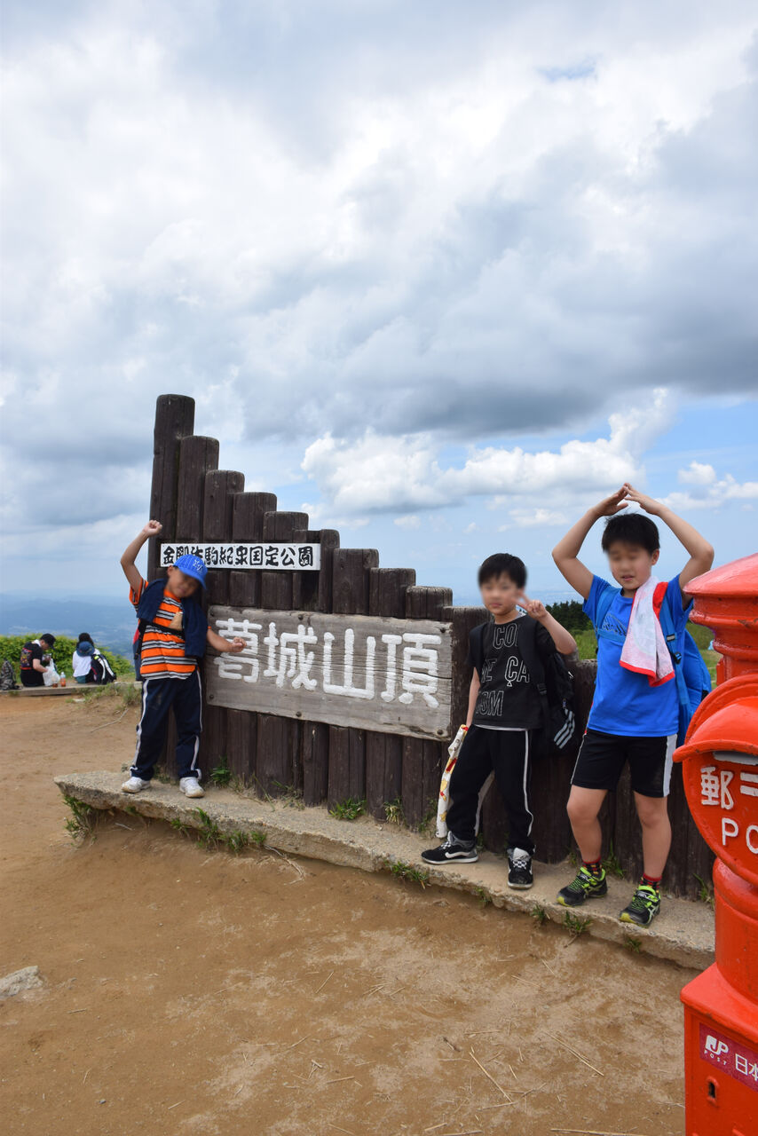 葛城山ロープウェイ登山口から徒歩で、小学生男子3名が山頂を目指しました。