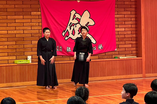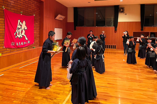 劔志館伸心塾の記念品贈呈。